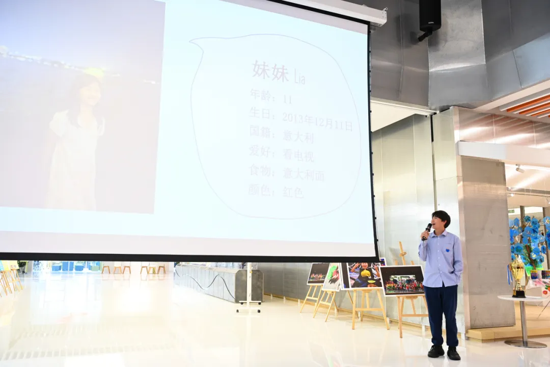 While the Grade 6-7 performances focused on practical communication, Grade 9 student Leonardo Scarpella (Dodo)'s "About Me" project demonstrates a deeper level of personal expression and comprehensive Chinese application. Dodo fluently introduced his family, birthday, hobbies, and favorite food using a visually rich presentation.